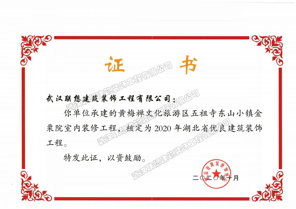2020年湖北省優(yōu)良建筑裝飾工程(黃梅禪文化旅游區(qū)五祖寺東山小鎮(zhèn)金栗院室內(nèi)工程)