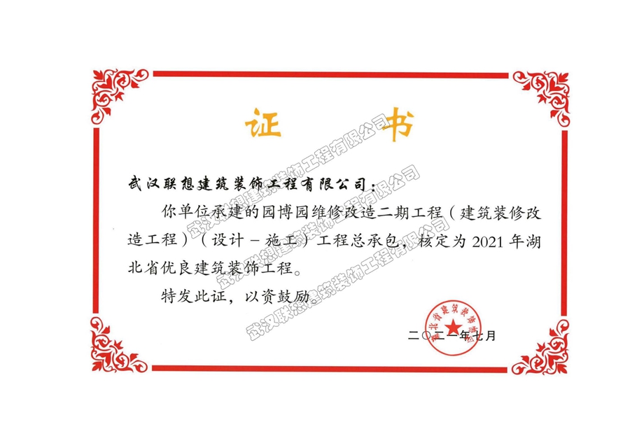 2021年度湖北省優(yōu)良建筑工程(園博園維修改造二期工程(建筑裝修改造工程(設(shè)計-施工)工程)