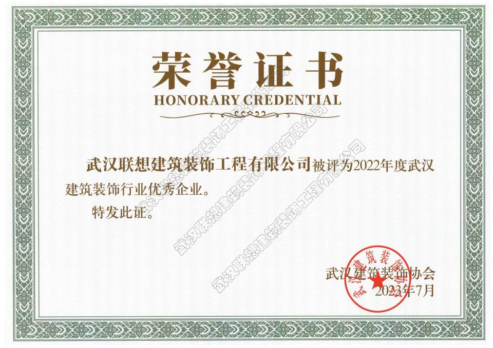2022年度武漢建筑裝飾行業優秀企業