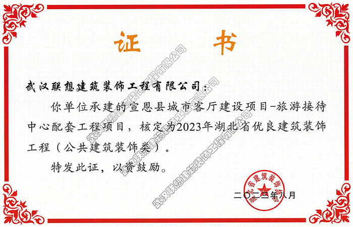 2023年湖北省優良建筑裝飾工程(宣恩縣城市客廳建設項目-旅游接待中心配套工程項目)
