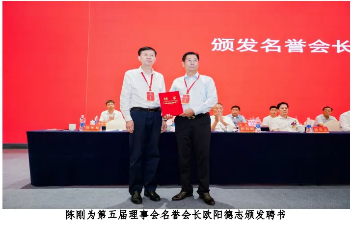 陳剛提名第四屆理事會會長歐陽德志任第五屆理事會名譽會長,并為其頒發(fā)了榮譽證書。