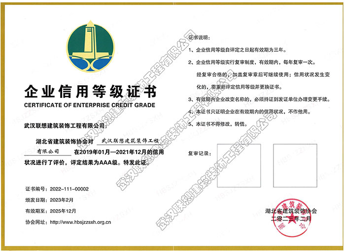 湖北省建筑裝飾協會3A信用評價