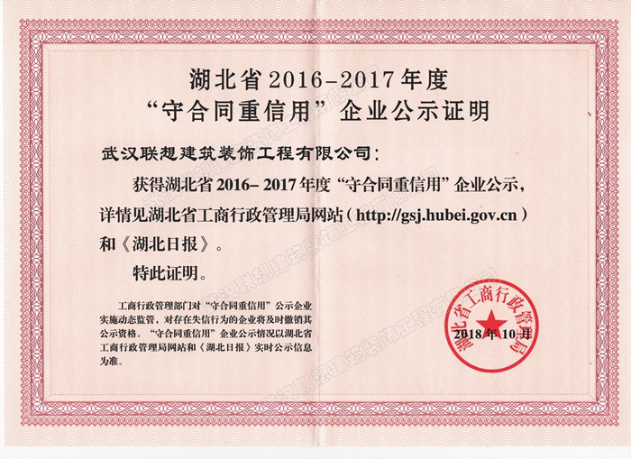 2016-2017年度湖北省守合同重信用