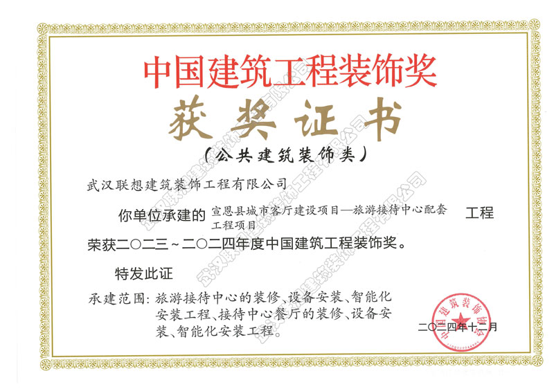 2023-2024年度中國建筑裝飾工程裝飾獎(宣恩縣城市客廳建設項目-旅游接待中心配套工程項目)