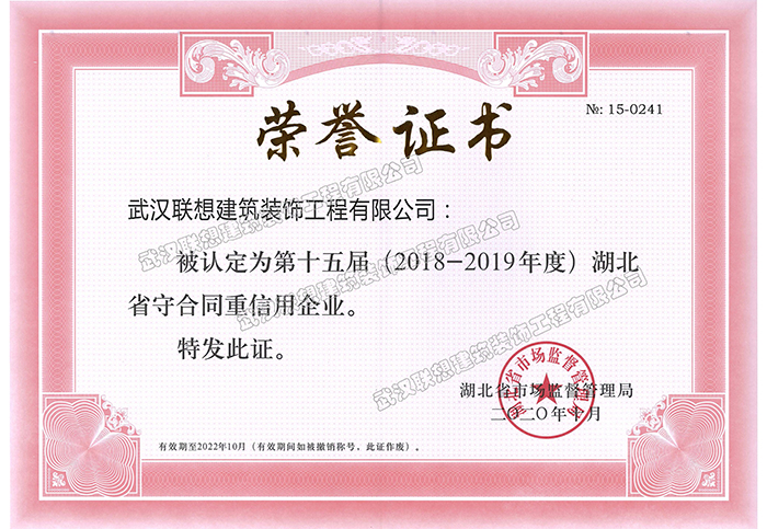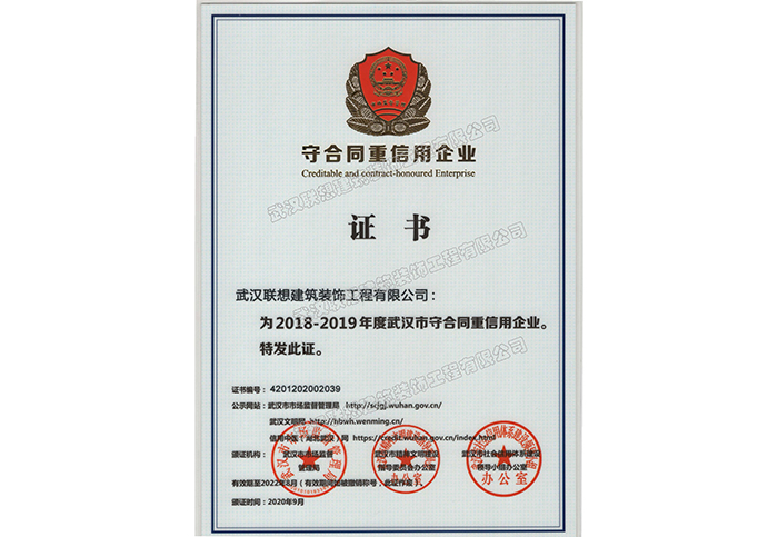 2018-2019年度武漢市守合同重信用