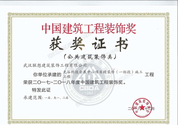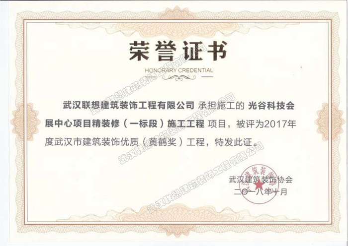 2017年度武漢市建筑裝飾優質工程黃鶴杯(光谷科技會展中心項目精裝修)