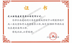 2019年湖北省優良建筑裝飾工程(利川香連康健城營銷中心精裝修設計及一層大堂和外立面精裝修工程)