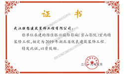 2019年湖北省優良建筑裝飾工程(維佳銀興國際影城(盤龍城影院)室內精裝修工程)
