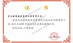 2019年湖北省優良建筑裝飾工程(武漢佰港國際大酒店室內精裝修工程)