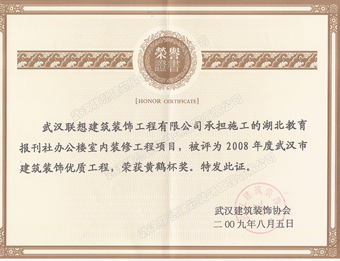 2008年度武漢建筑裝飾優質工程黃鶴杯(湖北教育報刊辦公樓室內裝修工程)