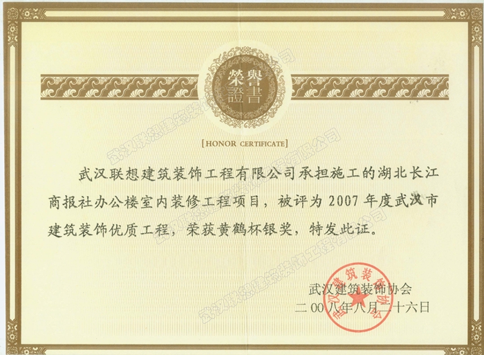 2007年度武漢建筑裝飾優質工程黃鶴杯(湖北長江商報社辦公樓室內裝修工程)